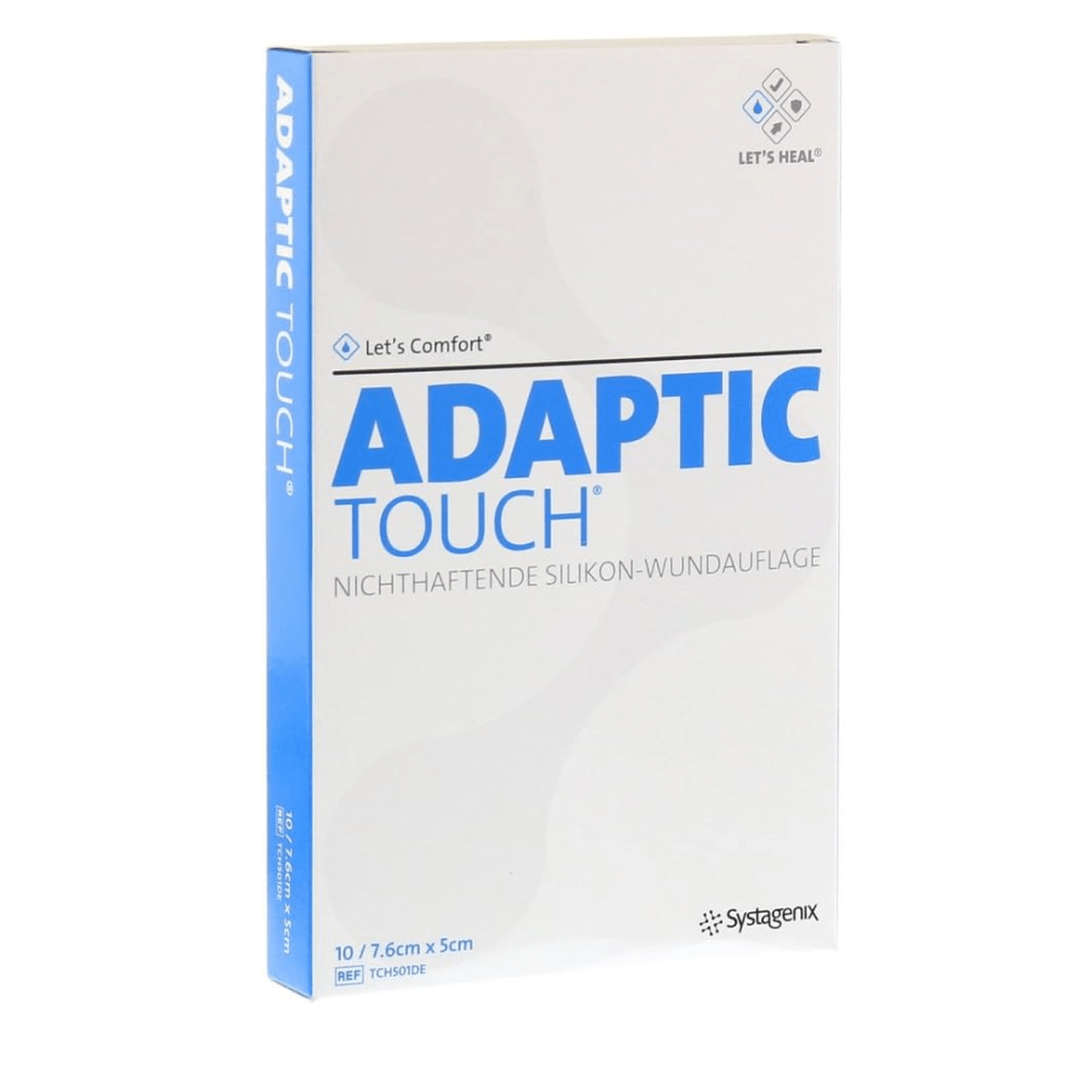 ADAPTIC TOUCH is a non-adherent, flexible, open-mesh primary wound contact layer composed of cellulose acetate coated with a soft tack silicone to assist dressing. The dressings may be used in the treatment of wounds healing by secondary intention, including dry to heavily exuding, partial and full-thickness chronic wounds. In addition, it can be used in the management of traumatic wounds such as skin tears. As the silicone is slightly ‘tacky’ this may help to maintain the position of the dressing.