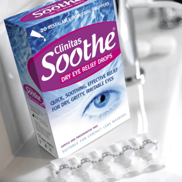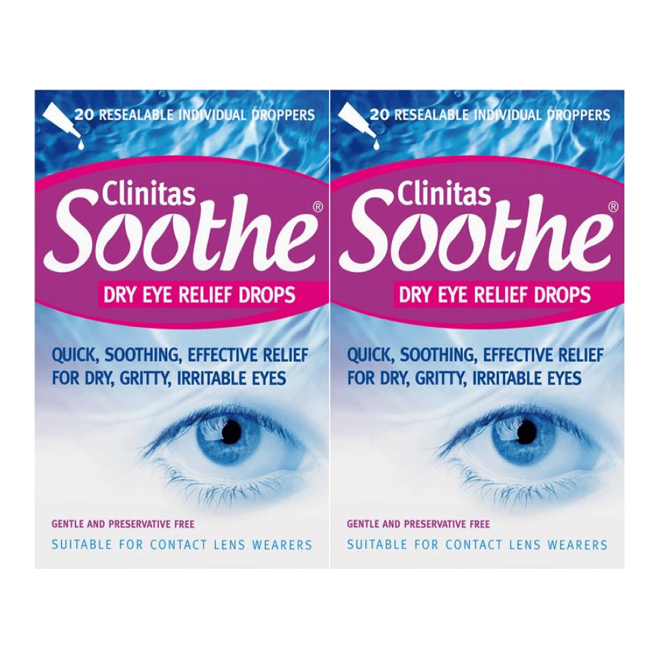 Clinitas Soothe is a gentle preservative-free eye drop, ideal for moderate-severe dry eyes, which contains the highest concentration of sodium hyaluronate (0.40%) available in an eye drop. Sodium hyaluronate (or hyaluronic acid) is a naturally occurring product in the eye and widely used in many eye drops for its fast and effective relief of dry eye symptoms. Clinitas Soothe is available as either a box of 20 resealable vials (about 10 drops for use over a day) or a 10ml multi-dose bottle (which can be used for up to 90 days after opening). Both forms of the product are completely preservative free and ideal for: