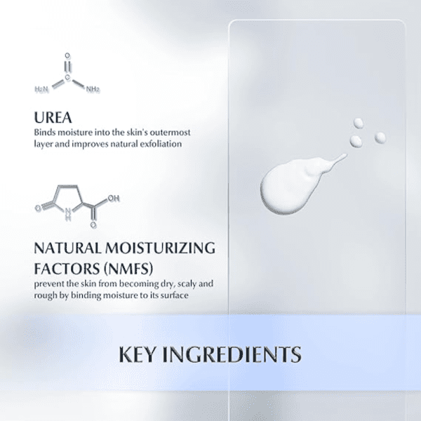 Contains Urea 10% w/w. Also contains Benzyl Alcohol, Light Liquid Paraffin, Sodium Lactate Solution, Magnesium Stearate, Microcrystalline Wax, Triglycerol Diisostearate, Isopropyl Palmitate, Wool Alcohols, Magnesium Sulphate and Purified Water Apply sparingly twice daily to the affected areas of the skin and rub in. Avoid contact with the eyes and other sensitive areas. See the enclosed leaflet for other important information before use.