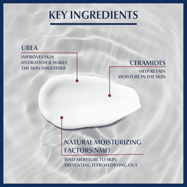 • Urea & Cermaides lock in moisture & improve skin hydration.