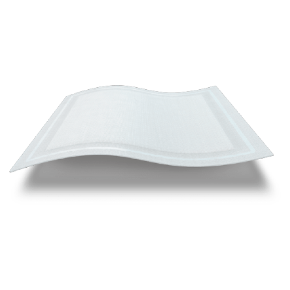 Soft, non-woven material helps to provide improved comfort for the patient along with excellent transpiration. Unique horizontal wicking area effectively increases capacity by distributing exudate throughout the dressing. Super absorbent core locks exudate in so the dressing remains dry to the touch, improving comfort and facilitating faster healing. Heat sealed border prevent leakage from the dressing so that the patient remains clean and comfortable for a longer period.