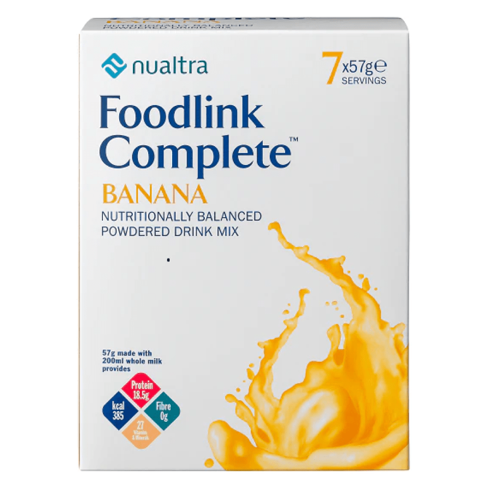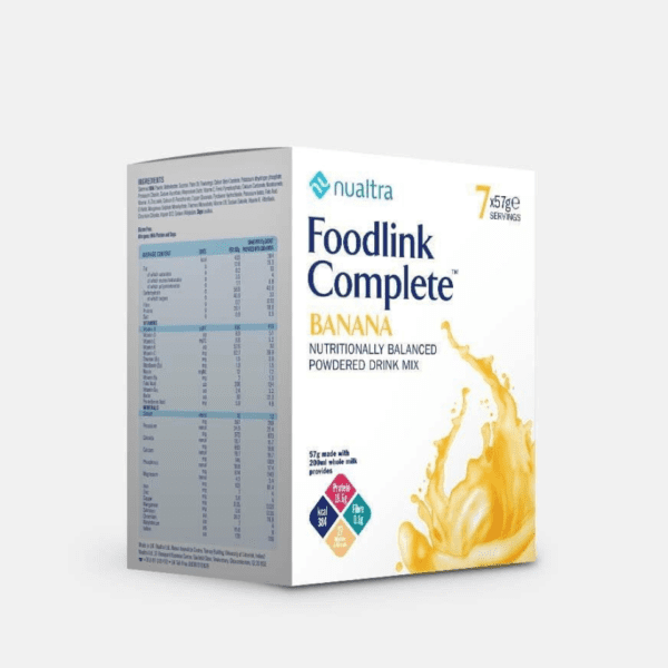 Foodlink Complete is designed to supplement a patient’s dietary intake and is not suitable as a sole source of nutrition. Foodlink Complete Banana Powdered Drink Mix is formulated to help give additional energy, protein, vitamins and minerals when you are finding it hard to meet your nutritional requirements. Foodlink Complete is purchasable in 5 tasty flavours.