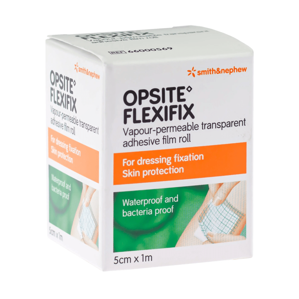 Easy to use on tricky areas – Opsite Flexifix is designed to apply easily to hard-to-reach areas of the body, as well as over dressings and tubes. The film is flexible and stretches to comfortably fit the body, improving patient comfort.