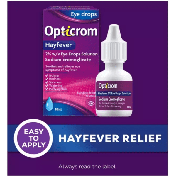 Opticrom Eye Drops 10ml – Sodium Cromoglicate Solution for Hayfever & Allergy Symptoms