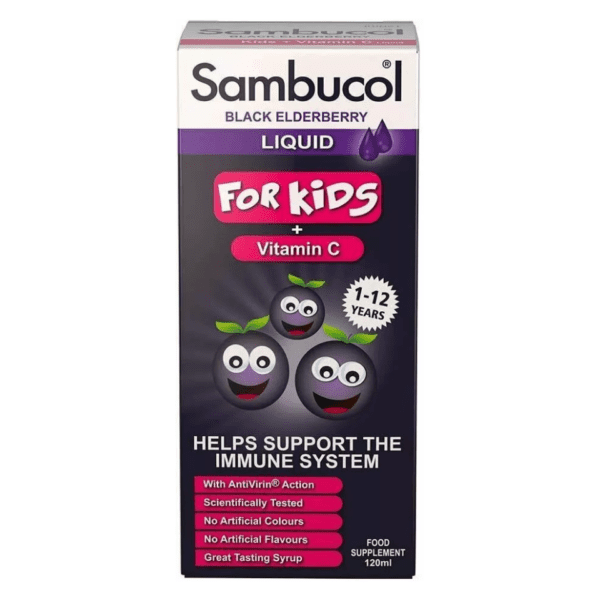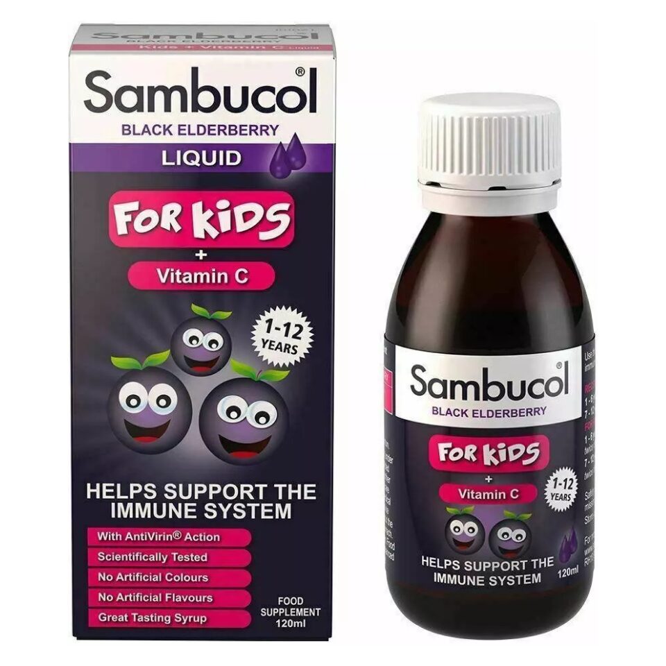 Sambucol is the product of over 25 years of scientific research, making it the most extensively researched Black Elderberry vitamin in the world. Sambucol is the original Black Elderberry brand developed in 1991. Sambucol was founded on the plant-based properties of Black Elderberry (Sambucus nigra) using a preparation method that helps preserve the rich, phytonutrient flavonoids (anthocyanins) present in the Black Elderberries to maintain its natural effect. A delicious Black Elderberry vitamin plus Vitamin C for all-year-round immune support, especially during school terms and winter season. Sambucol Kids Liquid contains Black Elderberry with naturally occurring flavonoids plus Vitamin C which contributes to the normal function of the immune system and protection of cells from oxidative stress.
