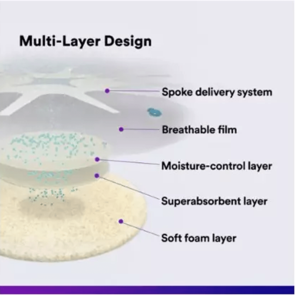 • Unique multi-layer design provides high absorbency with high breathability to reduce the risk of maceration.