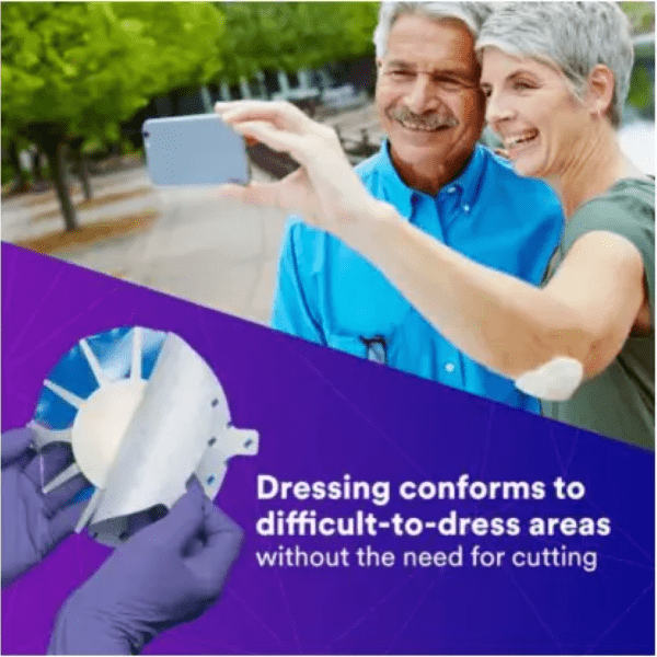 3M Tegaderm Adhesive Foam Dressing is designed to manage low to high levels of exudate, helping to maintain a positive moisture balance, lowering the risk of periwound maceration and supporting in the prevention of wound desiccation. It features a unique formula which allows it to be used in both moist and dry conditions. It’s water resistant, allowing you to shower with the dressing on, whilst the spoke delivery system allows for simple, accurate, and secure application.
