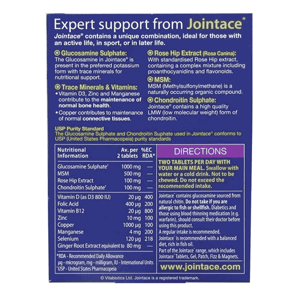 Vitabiotics Jointace tablets contain a unique combination of 12 nutrients which help provide a comprehensive solution, combining the commonly used