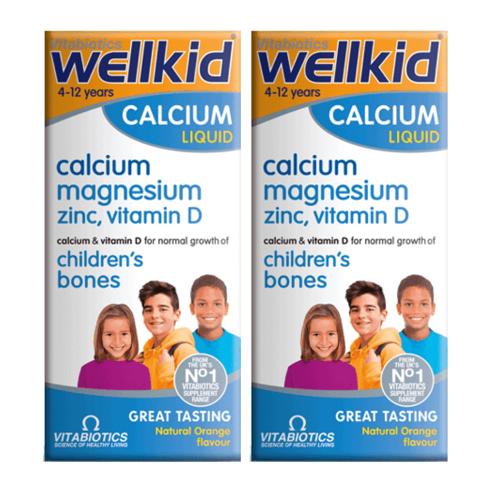Vitabiotics Wellkid Calcium Liquid provides a rich source of calcium and co-factors magnesium, zinc, copper and vitamin D for children aged 4 – 12 years. It has a delicious orange taste that children will enjoy and comes with a measuring spoon for easy administration. Vitabiotics Wellkid Calcium Liquid does not contain any dairy products and is 100% fat free , making it ideal for children using soya milk who may need to supplement their diet with calcium and magnesium. It is scientifically proven that calcium and vitamin D are needed for normal growth and development of bone in children and evidence suggests that healthy practices early in life, including the adequate consumption of calcium and trace elements, contribute to normal bone health and optimal bone mineralisation. Peak bone mass, obtained during childhood and adolescent growth is known to be of major importance in maintaining bones later in life.